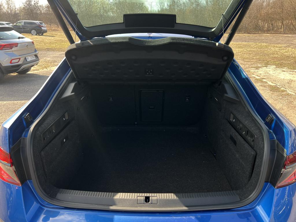 Tylne oparcie kanapy składane i dzielone z podłokietnikiem i przejściem do przestrzeni bagażnika